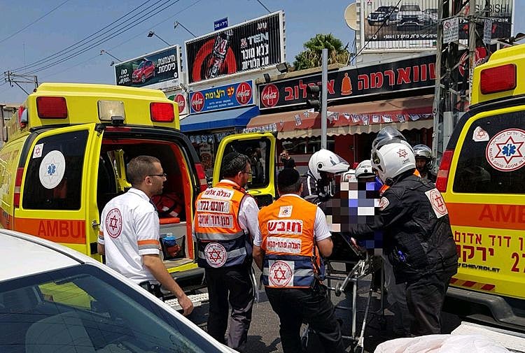 חובש רפואת חירום יוסי פרנקל ופרמדיק מד"א תום דגן סיפרו: "בתוך חנות מזון ראינו גבר כבן 40 בהכרה מלאה, יושב על כיסא עם פצעי דקירה מדממים בפלג גופו העליון. הענקנו לו טיפול רפואי מציל חיים שכלל עצירת דימומים, העלנו אותו לניידת טיפול נמרץ ופינינו אותו לבי"ח כשמצבו מוגדר בינוני עד קשה ויציב".